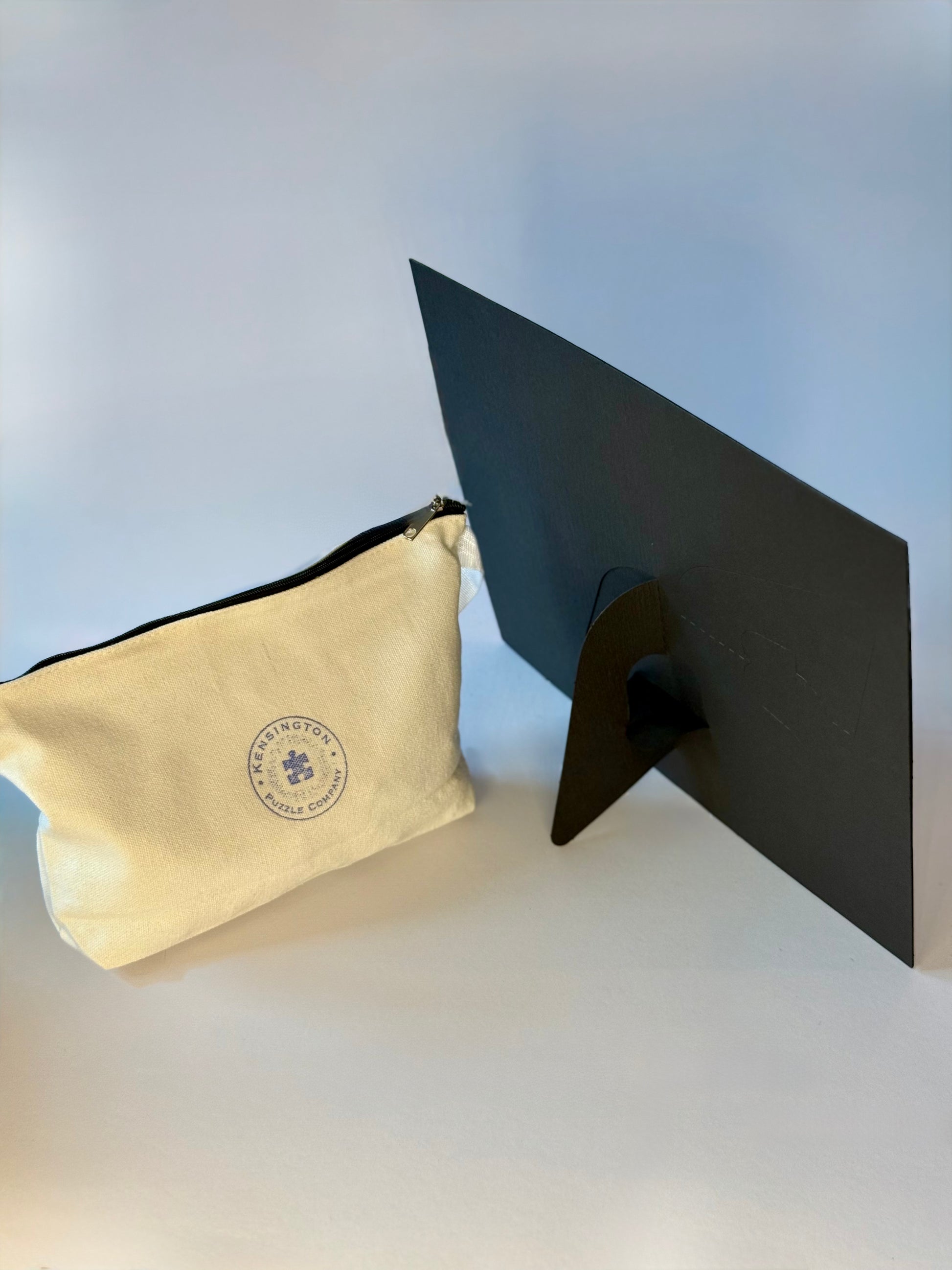 Each Kensington Puzzle arrives in a cloth bag with two 8"×10" gallery-quality prints and a stand-up frame for easy viewing as you puzzle. Our box-free design reduces clutter and elevates the beauty of your space, offering a more thoughtful and peaceful puzzling experience.